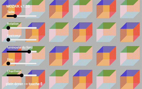 Une sorte d’interface web pour générer des paternes géométriques complexes sur la base d’un carré et son contour.